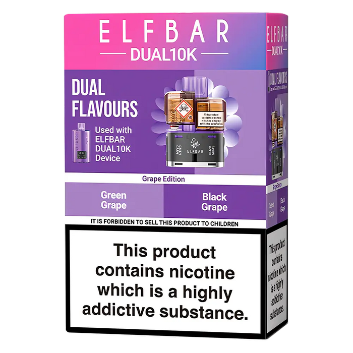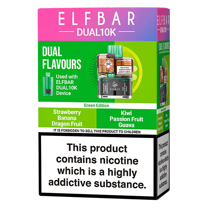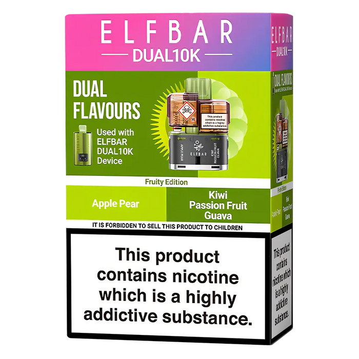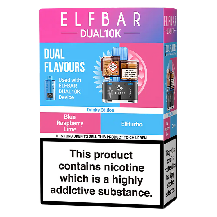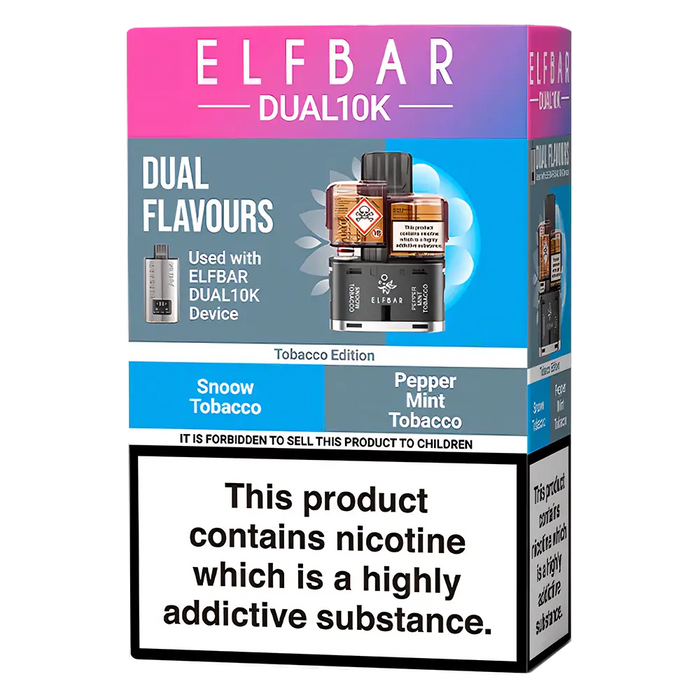 Elf Bar Dual 10K Pods are designed for use with the Elf Bar Dual 10K Prefilled Pod Kit. Each pod delivers up to 10,000 puffs, offering exceptional longevity, smooth vapour, and full flavour.