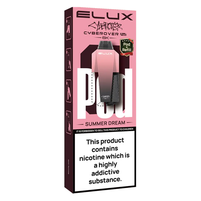 Experience futuristic vaping with the Elux Cyberover 6000 Pods, designed exclusively for the Elux Cyberover 6K Pod Kit. Each prefilled pod delivers up to 6000 puffs of rich, flavour-intense vapour, making it ideal for vapers who demand both performance and convenience.