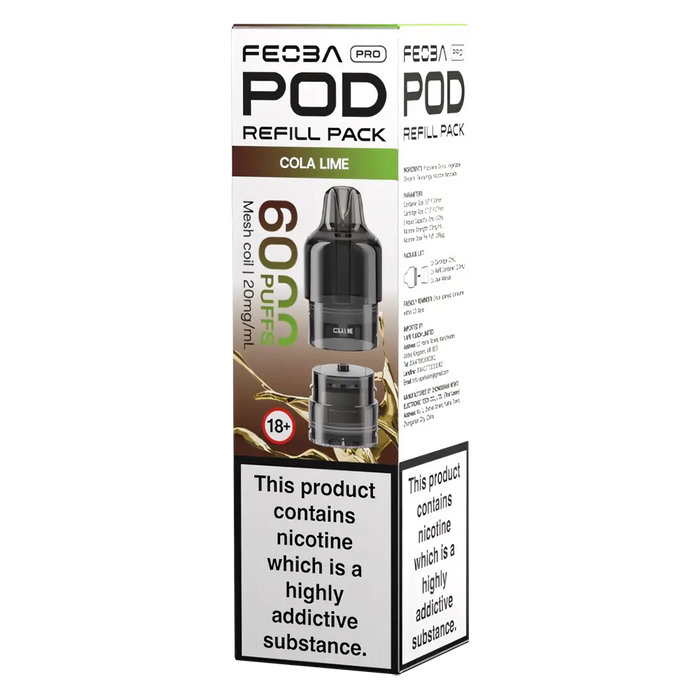 Each FEOBA pod is prefilled with 2ml of TPD-compliant e-liquid and paired with a 10ml refill container, giving you a generous 12ml total e-liquid capacity. With 20mg (2%) nicotine salt strength, you’ll enjoy a smooth throat hit and rapid nicotine delivery with every puff.
