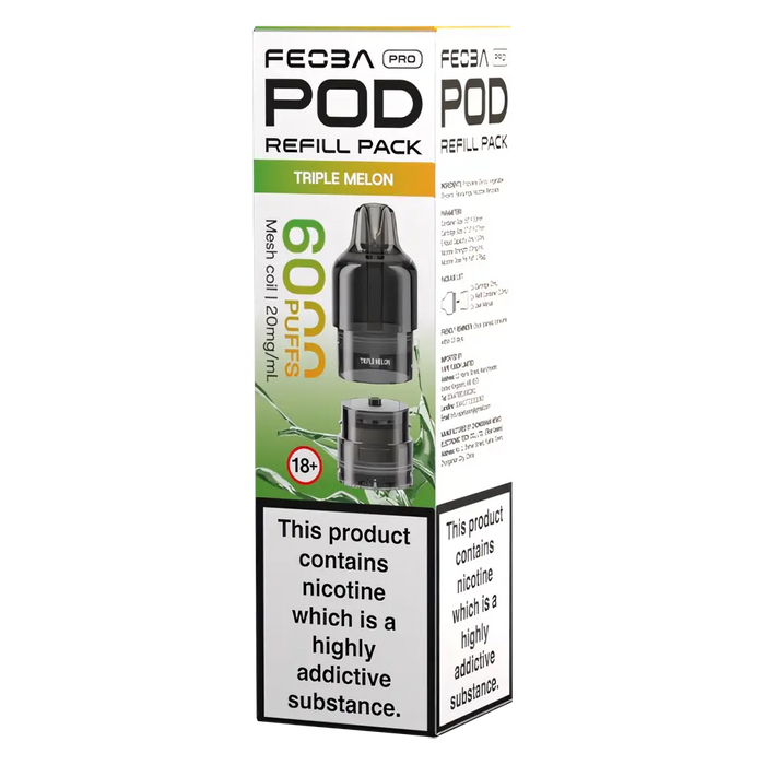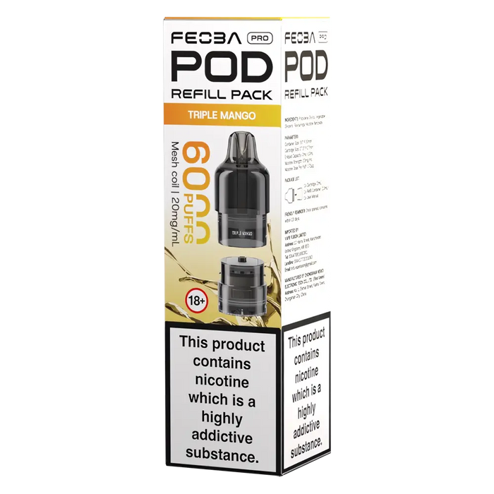 The FEOBA 6000 Pods are designed exclusively for use with the FEOBA Bar Pro 6000 Prefilled Pod Kit. Each pod delivers up to 6000 puffs, offering long-lasting satisfaction in a compact, easy-to-use format.