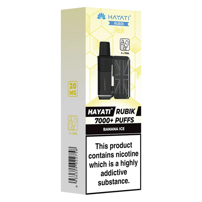 Hayati Rubik 7000 Pods are the perfect replacement for your Hayati Rubik 7000 device. Designed for simplicity and satisfaction, these pods are prefilled with premium nic salt e-liquid and ready to use straight out of the box. Each pack can provide up to 7000 puffs with smooth nic salts. Choose from 20 available flavours and enjoy the best performance from Hayati Rubik prefilled pods!