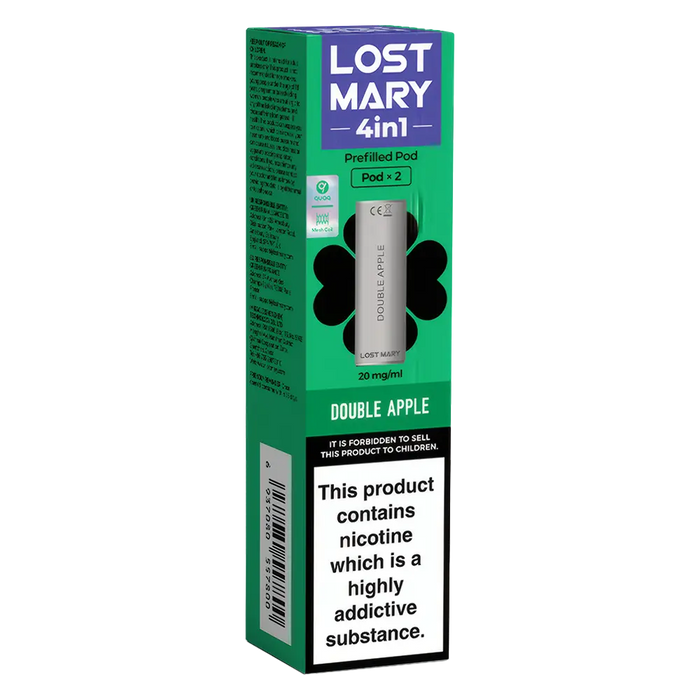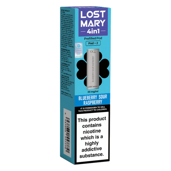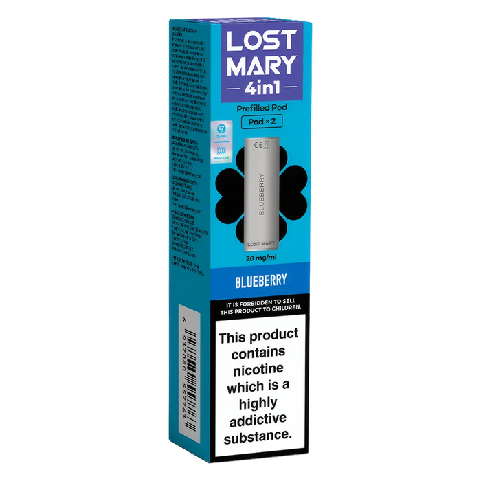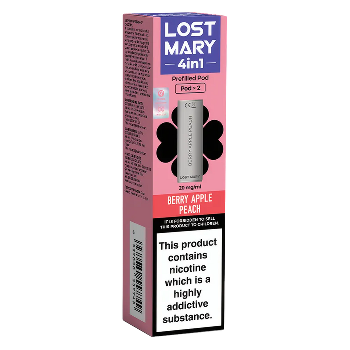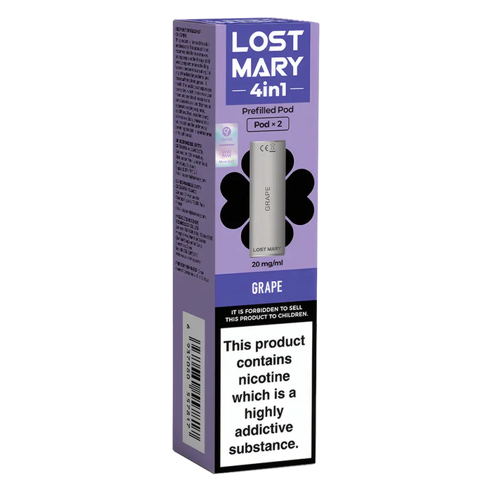 The Lost Mary 4 in 1 Prefilled Pods are designed exclusively for the Lost Mary 4 in 1 Vape Kit, providing a seamless and flavourful vaping experience. Each pack contains two 2ml prefilled pods, each loaded with 20mg nicotine salt e-liquid, delivering up to 800 puffs per pod (ECO Mode).