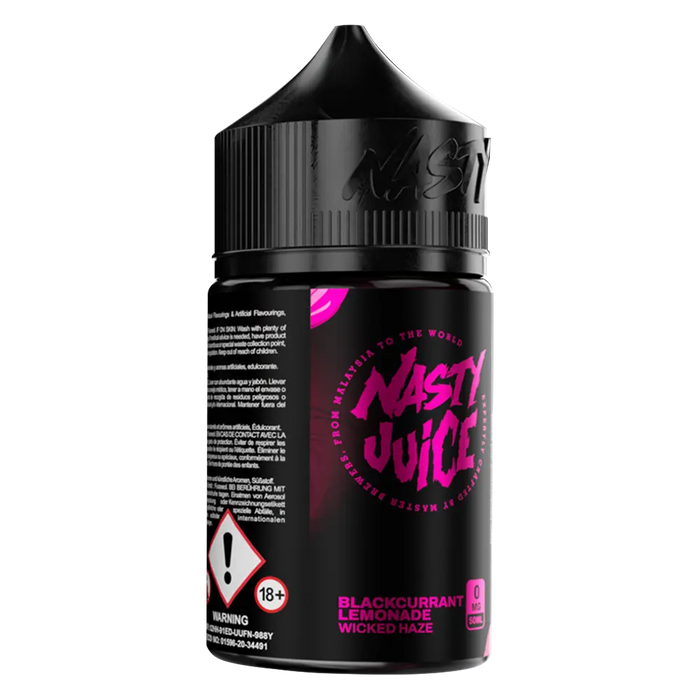 Experience the zesty and fruity flavour explosion of Wicked Haze Liquid Vape by Nasty Juice. This premium vape juice features a fizzy lemonade base infused with blackcurrant's deep, rich taste, providing a sweet and sour layered vape experience that tantalizes your taste buds.