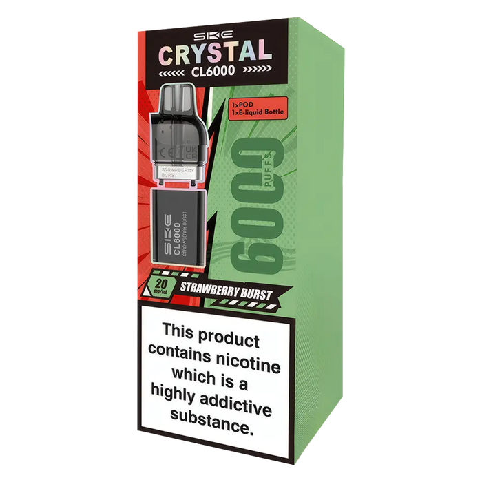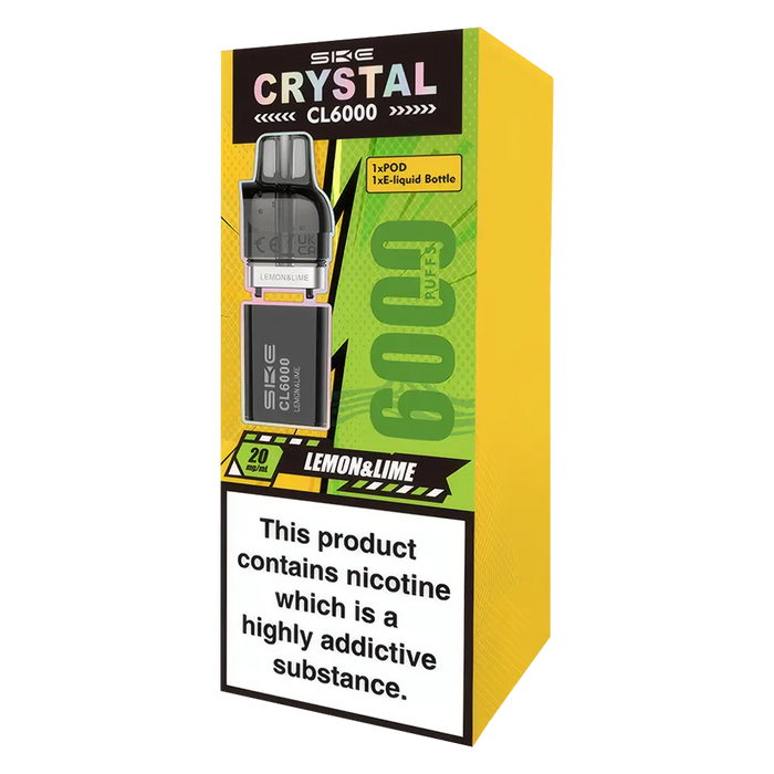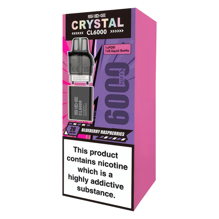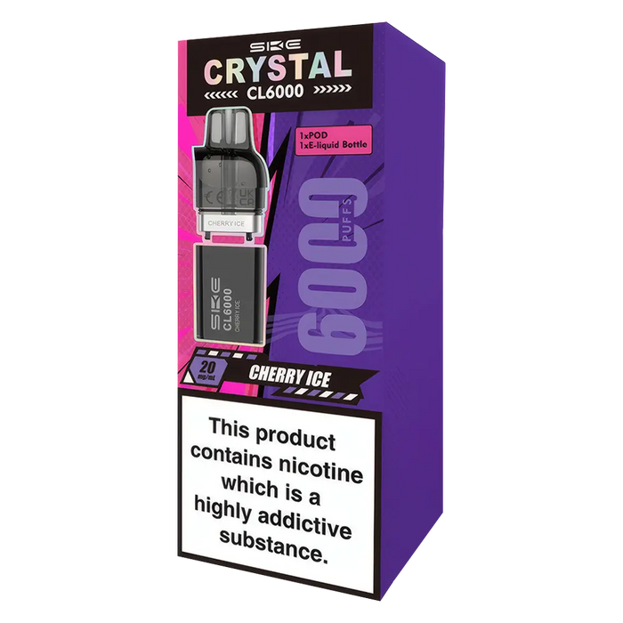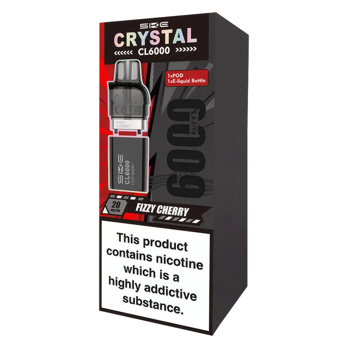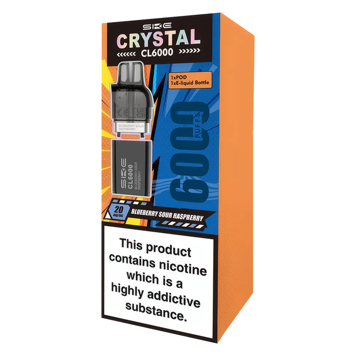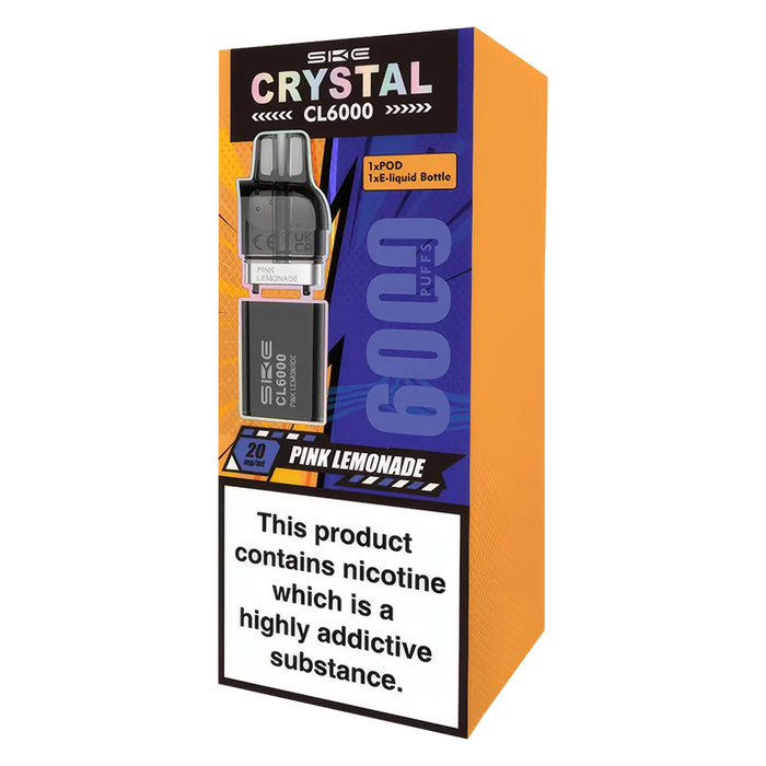 Upgrade your vaping experience with SKE Crystal CL6000 Prefilled Pods, designed for use with the SKE Crystal CL6000 Pod Kit. These premium pods come preloaded with 20mg nic salt e-liquid. Each pack comes with a 2ml prefilled pod and a 10ml e-liquid refill container, delivering up to 6000 puffs of smooth, flavour-rich vapour.
